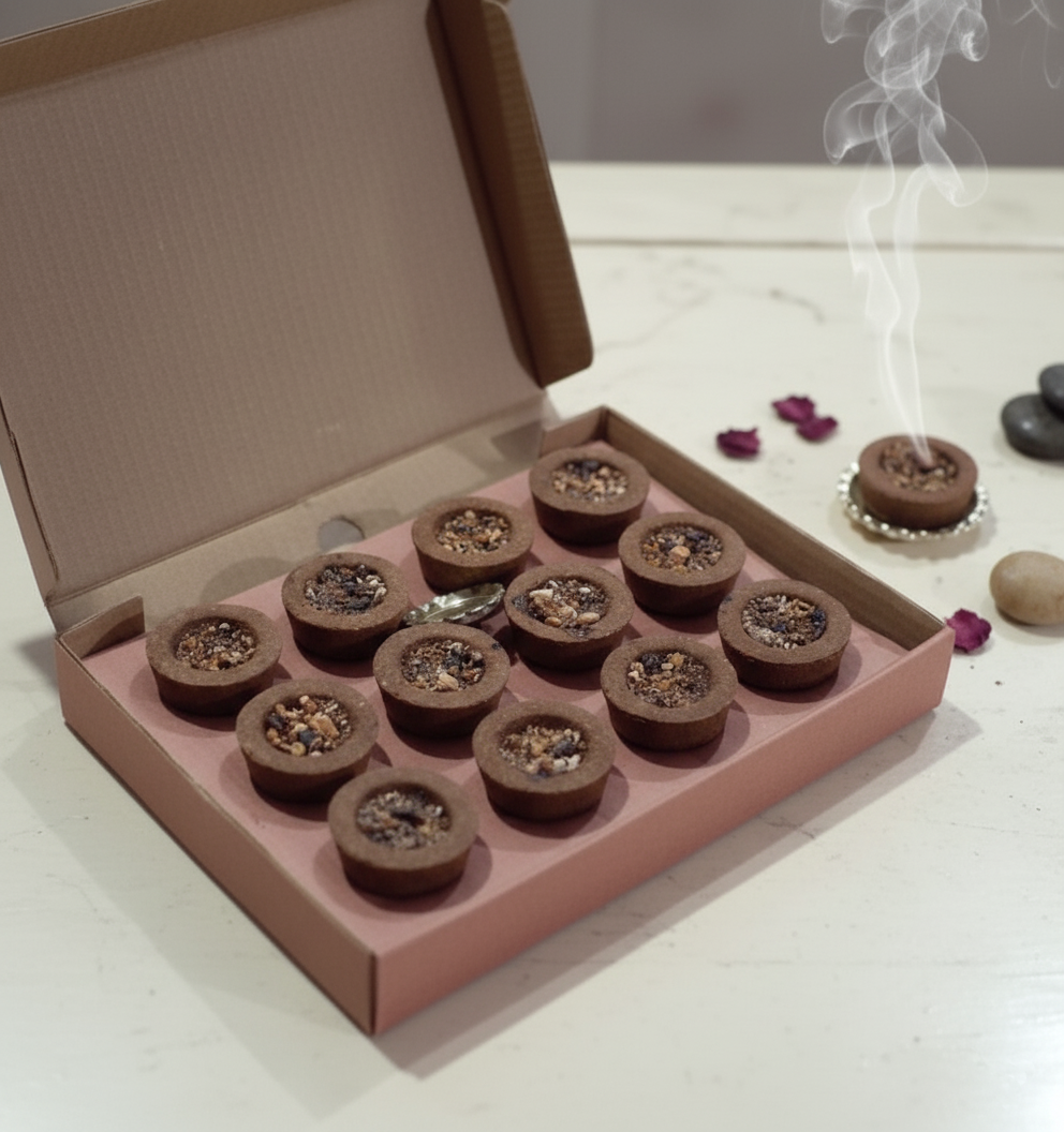 This is an authentic ritual experience. Our Havan Cups are 100% natural, hand-rolled, and crafted with reverence. They are completely free from charcoal, chemical accelerators, artificial fragrances, or any fillers.